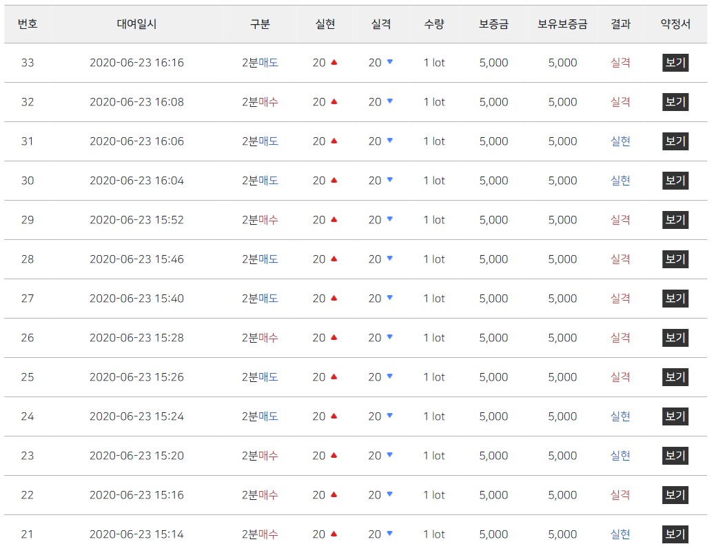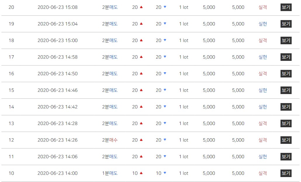 이제 이 밑에 사진은 리딩을 듣고 따라 했을 때 실현, 실격에 대해 보여주는 겁니다. 저는 돈이 없어서 일단 맛본다는 느낌으로 해서 5천 원씩 배팅을 했어요.