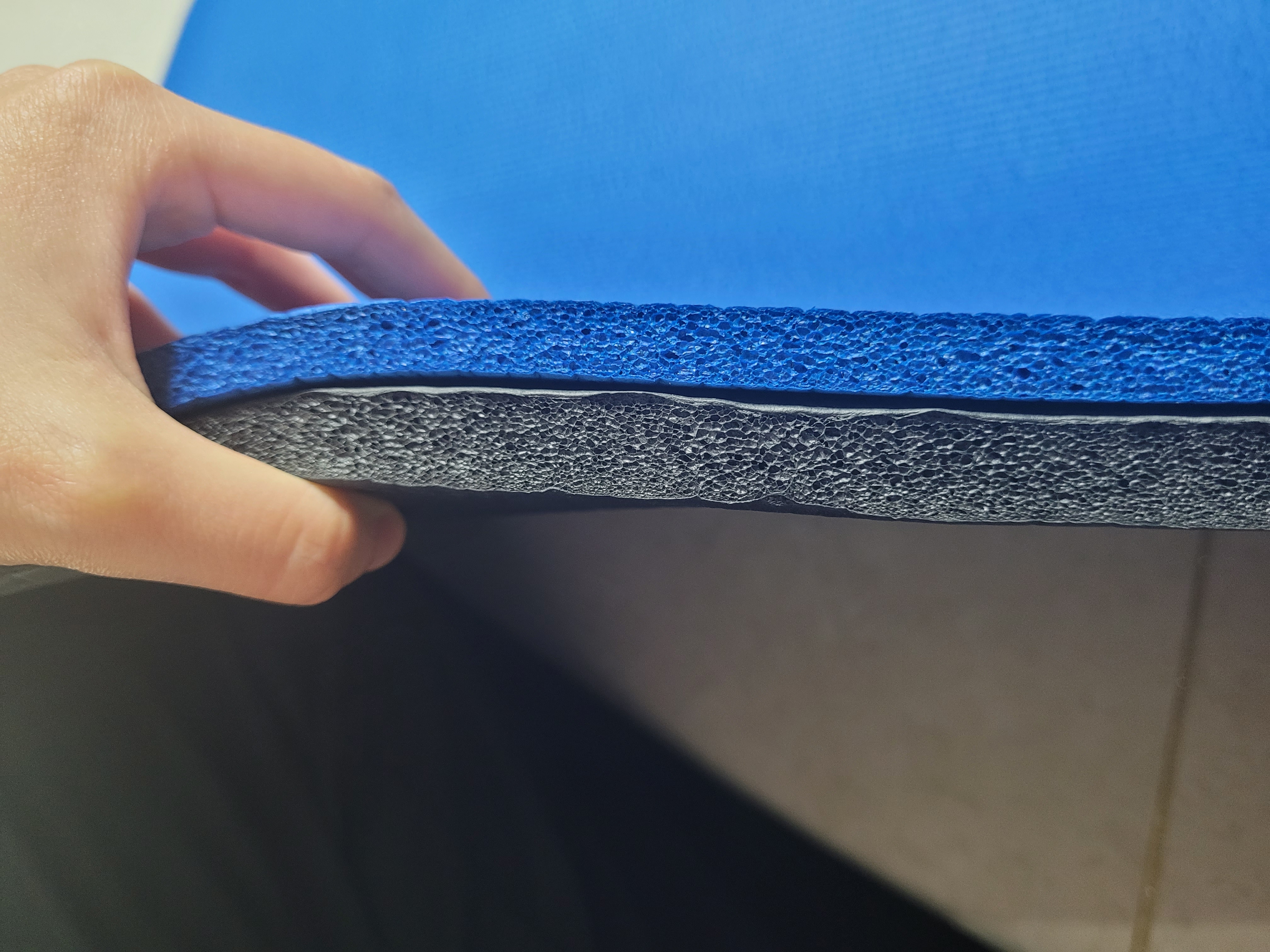 두껍죠? 10mm와 16mm가 있었는데 가격차이도 많이 나진 않아서, 아빠가 두꺼운걸 원한다고 하여서 16mm로 샀어요. 저도 앉아서 하는 운동을 할때는 꼬리뼈가 아팠는데 러시안트위스트를 해봤는데 괜찮더라구요! 런지를 할때도 밀림이 없으니 좋구요!